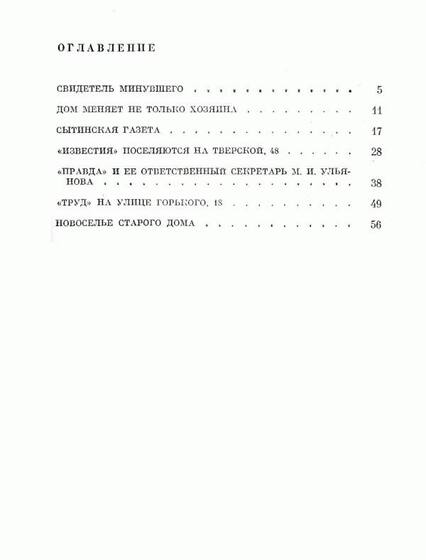 9‑я публикация цикла — книга «Улица Горького, 18» (1984 г.). Она рассказывает о здании — памятнике архитектуры начала века. С домом связаны судьбы книгоиздателя И. Д. Сытина, М. И. Ульяновой (ответственного секретаря «Правды»), И. И. Скворцова‑Степанова, В. Г. Лидина и других. В советское время здесь находились редакции газет «Правда», «Известия», «Труд».