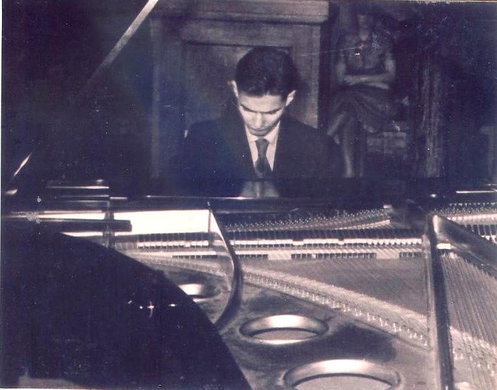 Юлий Давидович Гамбург играет на рояле в концертном зале...