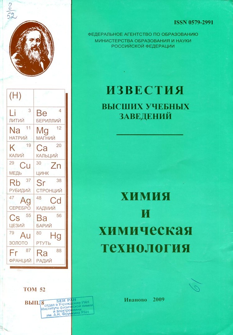 // Известия высших учебных заведений. Серия, Химия и химическая технология: научно-технический журнал. — 2009. т. 52 вып. 8. — 2009. — ISSN 0579-2991