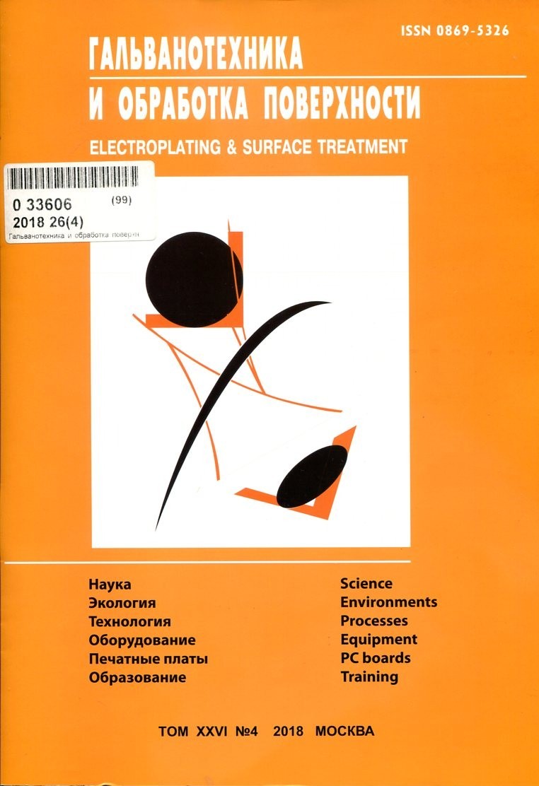 // Гальванотехника и обработка поверхности: журнал. — 2018. т. 26 вып. 4. — 2018. — ISSN 0869-5326