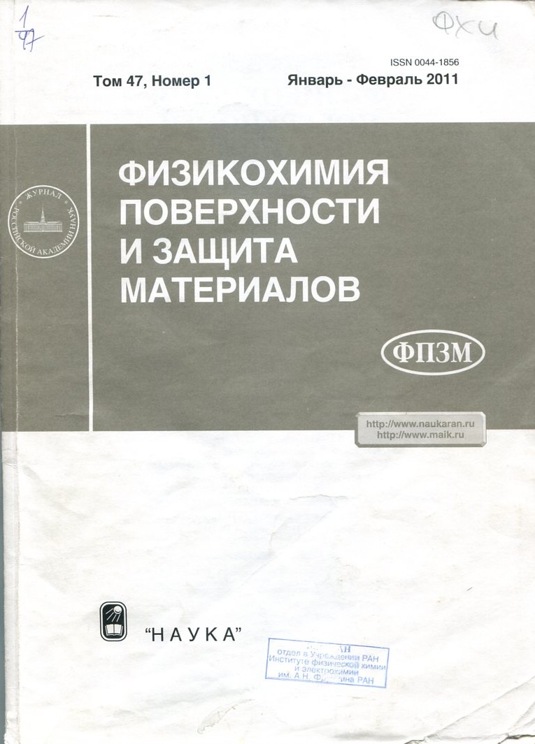// Физикохимия поверхности и защита материалов (ВАК) (до т. 44, н. 4: Защита металлов). 2011. т. 47 вып. 1. — 2011. — ISSN 0044-1856